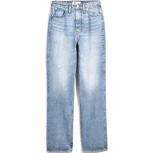 Madewell straight-legged '90s supermodel momjeans have a narrower waist with a contoured band, a longer rise (for a rounder booty) and a little extra room at the hips and thighs. The fabric: Lightweight and soft, this premium 100 percent cotton denim has old-school character and zero stretch.