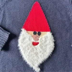 Charming navy sweater with a red gnome design. Soft and playful style. Size 90 fits size 3T.