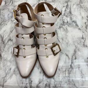 Michael Michael Kors leather Griffin Bootie block heel Cream gold buckle size 8
