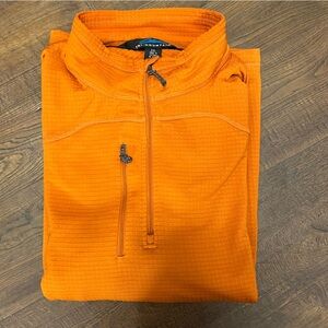 Men’s Tri-Mountain Tenzig Pullover - very nice and medium weight - sort of a textured mini square pattern. Rusty orange color - great for a cool fall or winter day or to layer - not super bulky. Zipper breast pocket. Worn once - excellent preloved condition. Lots of other items to be listed if you’re interested in this size please send a message! Adding daily. Rough measurements shown in photos.