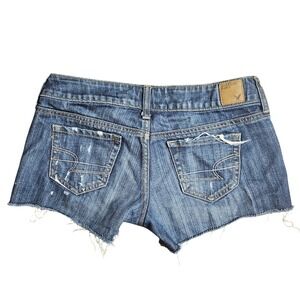 Embrace edgy summer style with these American Eagle Outfitters distressed denim cutoff shorts. The classic blue wash is perfectly complemented by strategic rips and fraying at the hem, adding a lived-in, laid-back vibe. Perfect for a day at the beach, a music festival, or a backyard BBQ.