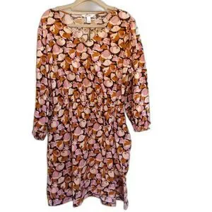 NINE WEST Floral Long Sleeve Textured Knee Length Dress Women's L