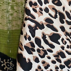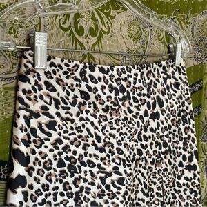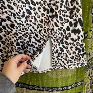 ▪️Style: Mini length, high-waisted fit, leopard print, invisible zipper in the back, side slit, soft silky material, unlined, minor stretch