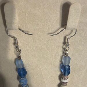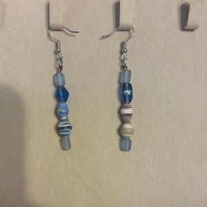 Elegant blue and beige beaded earrings perfect for any occasion. Add a touch of color to your outfit with these stylish accessories.