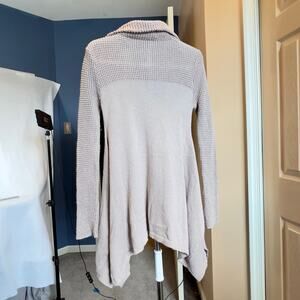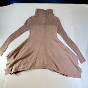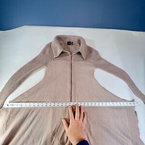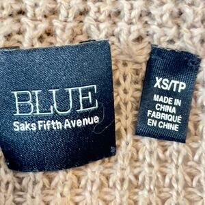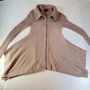 Blue Saks Fifth Ave Tunic Sweater Full Zip High Neck Collar Woman's XS Tan