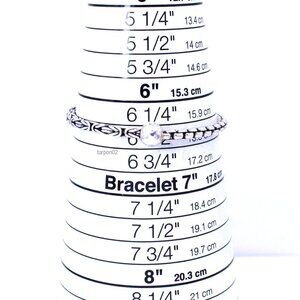 X-Small - Small: 6-1/2" Fit: Inside measures approx (due to thickness) 6-1/2" x 2" across x 3/8"W
