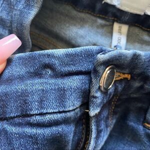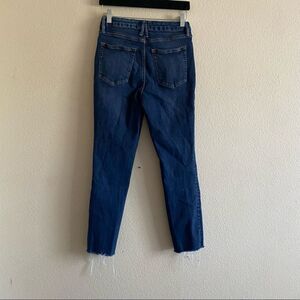 Good American Good Legs Dark Wash Stretchy Crop Raw Hem Blue Jeans