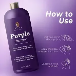 Purple Shampoo for Blondes: Perfect for maintaining the beautiful cool tones of blonde hair, our shampoo combats brassy tones effectively.Complements Purple Conditioner: For best results, pair with our purple conditioner, designed to enhance the effect of our purple blue shampoo for brassy blond, silver or bleached hair.Ideal for Gray Hair: This purple shampoo for gray hair for women and men revitalizes and maintains the sophisticated silver hues, preventing unwanted yellow tones.Banish Brassiness: Our purple shampoo for brassy hair specifically targets and neutralizes yellow tones, keeping your blonde and gray hair pristine.Ultimate Care for Color-Treated Hair: Recognized as the best shampoo for color-treated hair, our purple toning shampoo ensures your color stays vibrant and lasts longer.