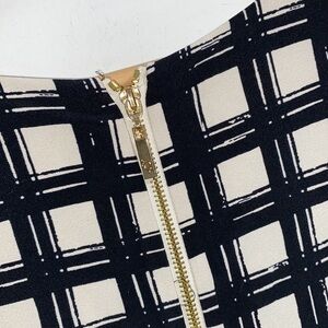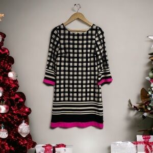 Eliza J dress windowpane print black tan hot pink exposed back zipper size 6