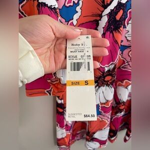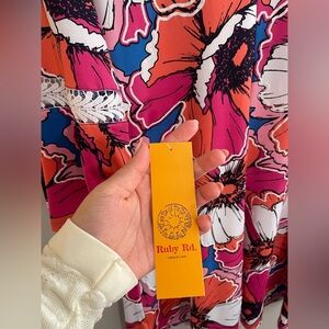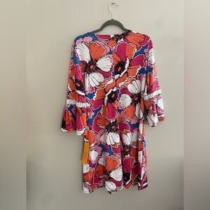 NWT Ruby Rd Colorful Printed Dress with long Bell Sleeves