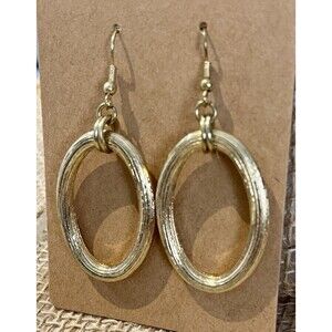 LARGE GOLD TONE METAL OVAL HOOP DANGLE EARRINGS