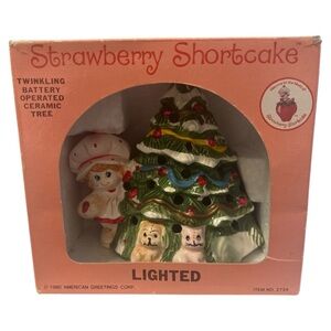 Vintage 1980 Strawberry Shortcake Twinkling Battery-Operated Ceramic Christmas Tree – In Box (Not Working)