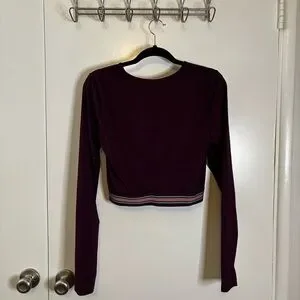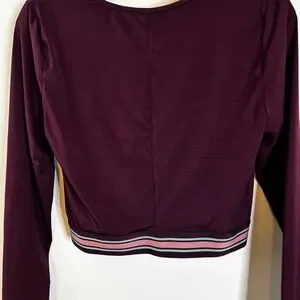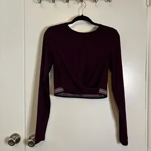 Fabletics cropped activewear top with recycled fabric, a twist front, and striped elastic bottom band. Soft stretchy breathable fabric. Eggplant purple color. New without tags, never worn. NWOT