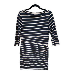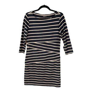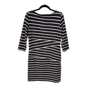 J. McLaughlin Size M Black Tan Nicola 3/4 Sleeves Striped Layered Dress