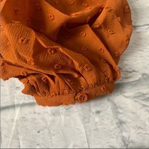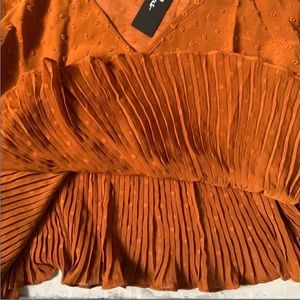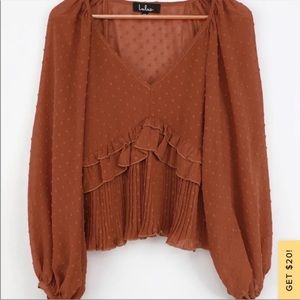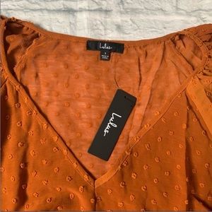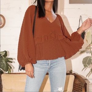 NWT lulu’s Thrills and Frills Rust Orange Swiss Dot Ruffled Long Sleeve Top