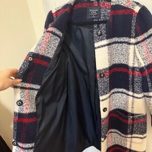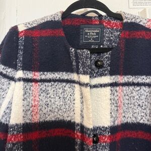Abercrombie & Fitch Navy and Red Plaid Pea Coat women’s size M