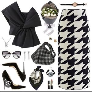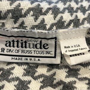 A refined addition to any vintage wardrobe, this high-waisted midi skirt features a timeless grey and white houndstooth plaid pattern reminiscent of classic 80s and 90s fashion. Crafted in the USA with union-made quality, the skirt offers understated sophistication and enduring appeal.