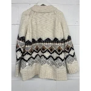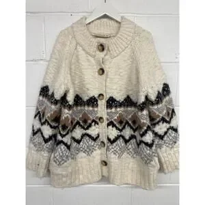 Vanessa Bruno Sz L Cream Vivi Fair Isle Nordic Oversized Wool Cardigan Sweater