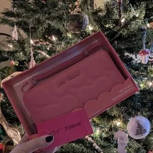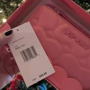 Chic bubblegum pink wallet with detachable wristlet. Betsey Johnson design for versatile style.