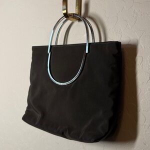 Vintage Nine West Chocolate Brown Nylon Mini Bag Metal Top Handle