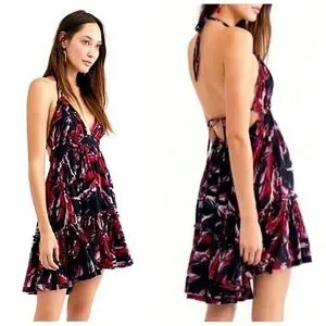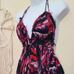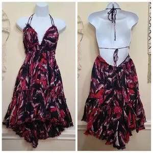 EUC, bought the wrong size, never worn by me, photos are exact condition, just trying to make back what I paid. Stylish and popular 100 degrees dress, adjustable ties make it a great fit for xs - m, halter dress with a vibrant red and black pattern with a touch of purple, flowy and beautiful! I have this dress in tons of colors as it’s always my go to! Looks great with sandals or boots and a sweater! Features an open back and tiered skirt. Perfect for summer outings or layered in the fall! This is a rare color combo!