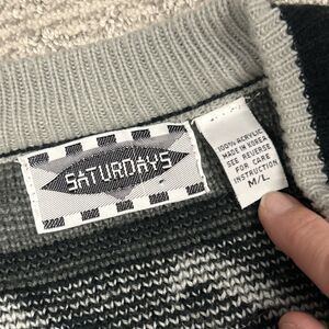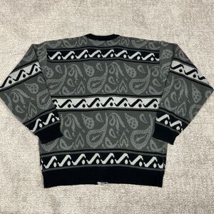 Saturdays Cardigan Sweater Mens Medium Large Gray Paisley Cardigan 90s Grandpa