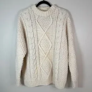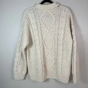Artesania Lucita Cream Cable Knit Wool Sweater Mock Neck Chunky Fisherman