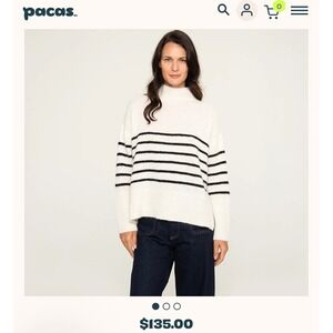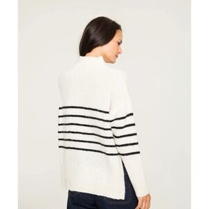 Pacas Cream Blue Stripe Mock Neck Sweater Cozy Oversized Fit