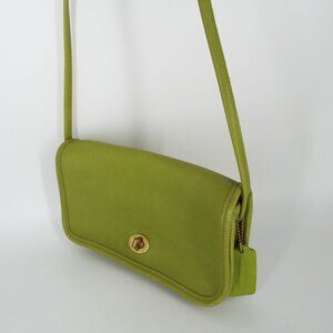 Vintage COACH Dinky 9375 Lime Green Leather Turn Lock Crossbody Bag Made in USA