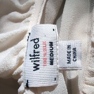 Very good gently used condition. Button up the back (spare button still attached to tag). Ruffle around collar. 100% silk. Size med. Please see photos for measurements to determine fit.
