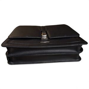 Discover the elegance of the KARL LAGERFELD PARIS Mercerie Shoulder Bag, a sophisticated accessory crafted from luxurious black leather. This chic shoulder bag features a sleek metallic clasp, offering both style and security. Perfect for the modern woman, it effortlessly complements any outfit, from casual daywear to evening ensembles. The bag comes with its original dust bag, ensuring it stays pristine. Elevate your accessory collection with this timeless piece. Protective cover over strap. New with tags (NWT).