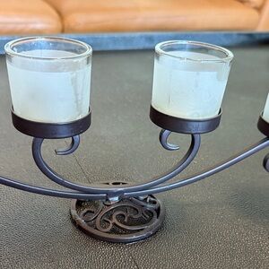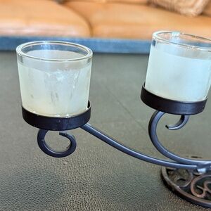 Enhance your home decor with this elegant dark brown metal candle holder. Perfect for adding a touch of sophistication to any room.