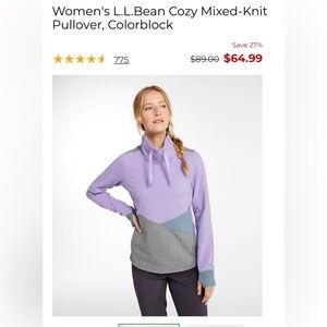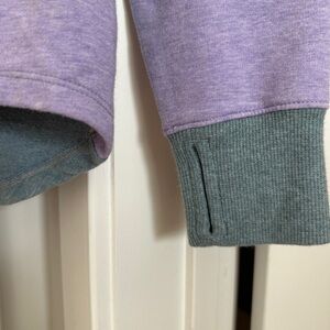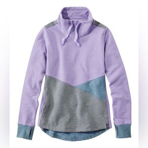 Stylish L.L. bean colorblock sweatshirt with a cowl neck. Features purple, gray, and blue tones. Brand new, never worn!