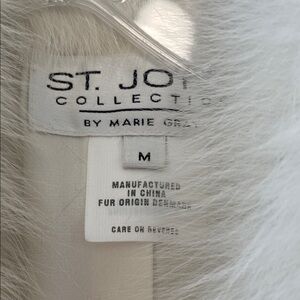 Luxurious teddy jacket by St. John. Features a plush fur collar. Perfect for a chic, sophisticated look.