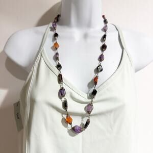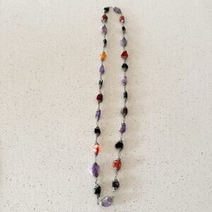 Caged Semi-Precious Gem Nugget Necklace 17” Drop Bohemian Witch