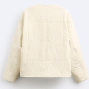 Zara Mens Light Padded Jacket Coat Modular Neckline Cream Snaps Closure.