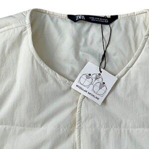Zara Men's Light Padded Jacket Coat Modular Neckline Cream Snaps Closure XL NWT