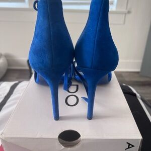 Chic and bold blue heels from Aldo. Elevate your style effortlessly. Minor Wear it says navy but it’s more like a Royal Blue heel is about 3.25