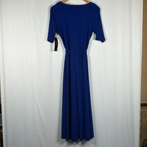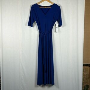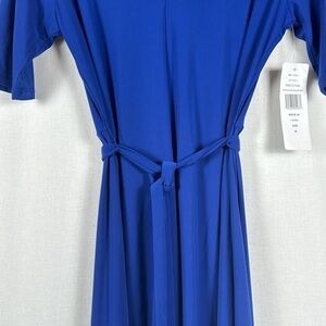 MSK Goddess Blue Midi Dress NWT Tie Waist Business Casual Work Office Stretchy M