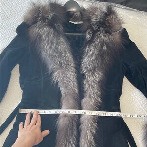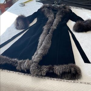 St. John Persian lamb lined Black leather Coat fox Fur Trim