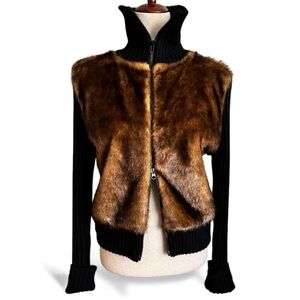 Y2k Frost black ribbed sweater with faux fur front. Zips from top and bottom. Funnel neck or fold over.