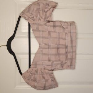 NWT Sensemill Women's Pink and Gray Puff Sleeve Plaid Corset Top Size S