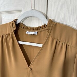 Calvin Klein Tan Carmel Long Sleeve Vneck Blouse