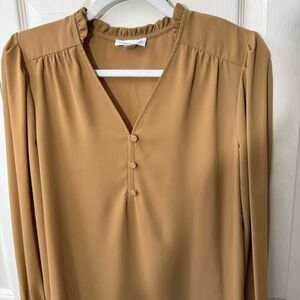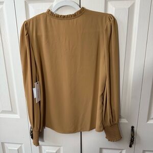Calvin Klein Tan Carmel Long Sleeve Vneck Blouse Women’s Size XS NWT