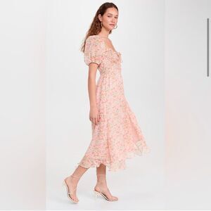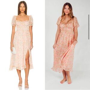 New Anthropologie ASTR The Label Lunaria Pleated Floral Orange Midi Dress
