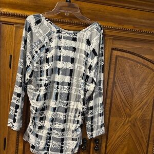 St. John Women's Black, Gray, and White Abstract Long Sleeve Top Size L EUC