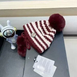 Moncler Red and white pom pom beanie
