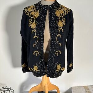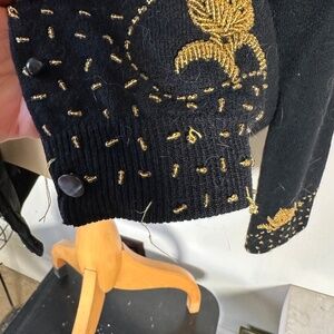 Vintage Black Cashmere Gold Beaded Cardigan (UL42) Regal Monarchy Design READ