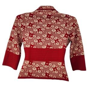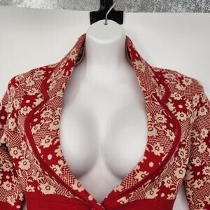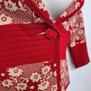 Anthropologie Moth Red Beige Cropped Floral Sweater Cardigan Women's S