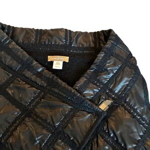 A striking black quilted wrap vest by Nordstrom, crafted in Italy from a soft wool-blend. The asymmetric crossover design makes it perfect for stylish layering over sweaters, turtlenecks, and athleisure. So flattering, modern, and elevated.
